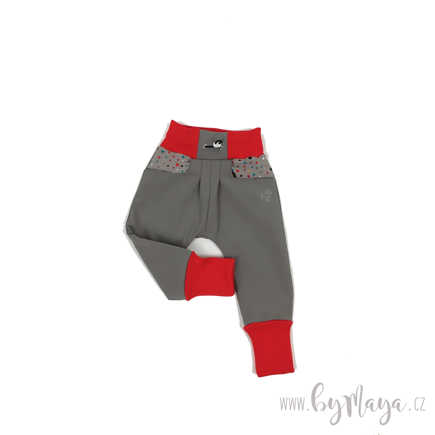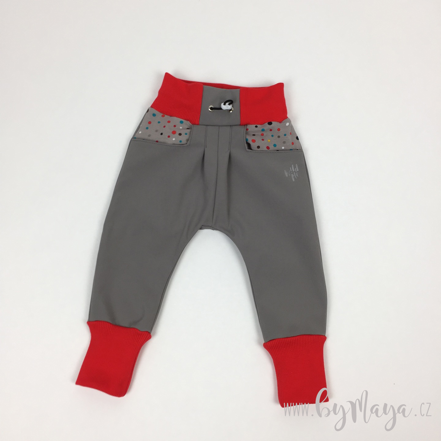 detske softshellove kalhoty - Puntiky a červený náplet