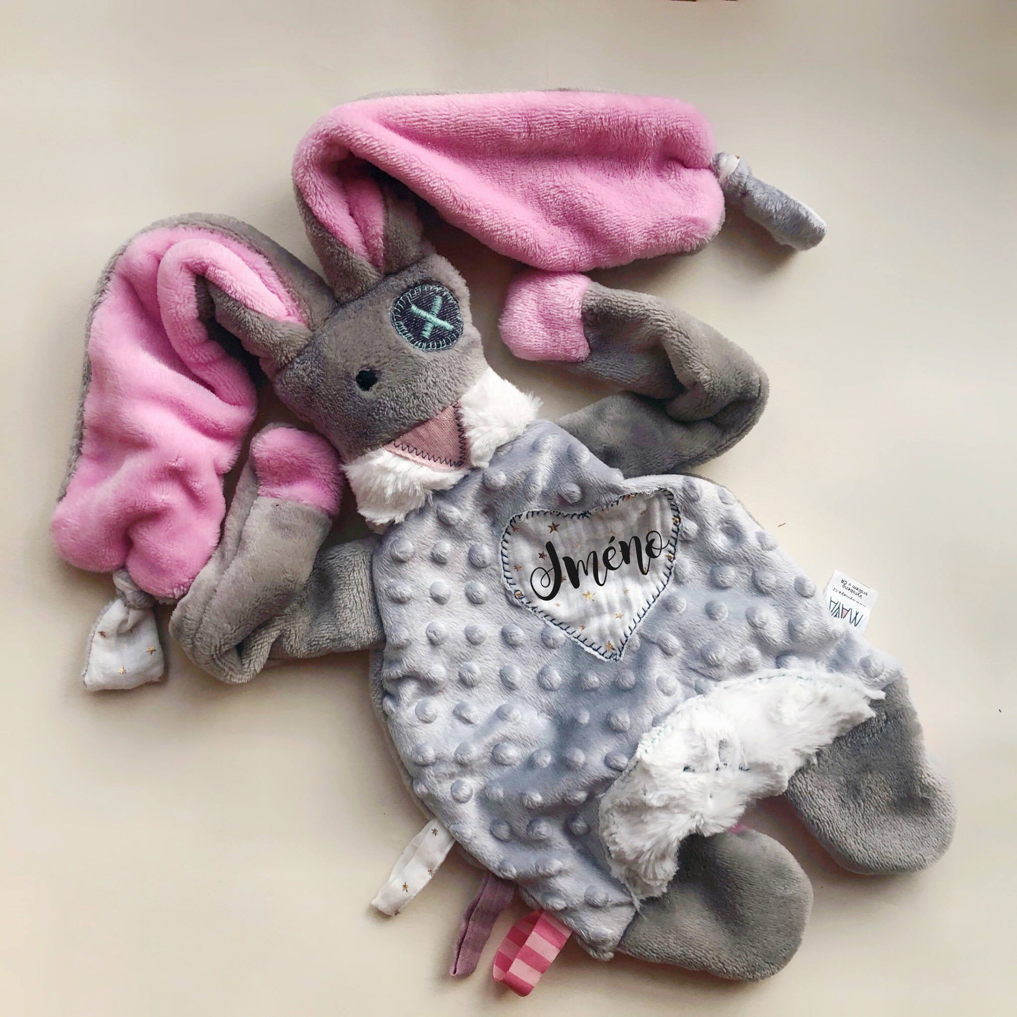 Muchláček je jako stvořený pro mazlení, žužlání i kousání. Miminka s ním snadněji usínají a také vkusně zdobí dětský pokojíček. Je ručně šitý z těch nejjemnějších látek a s pečlivostí zkušené maminky.